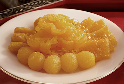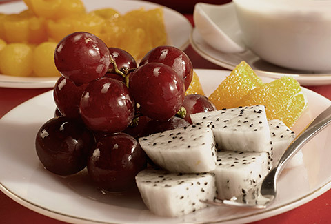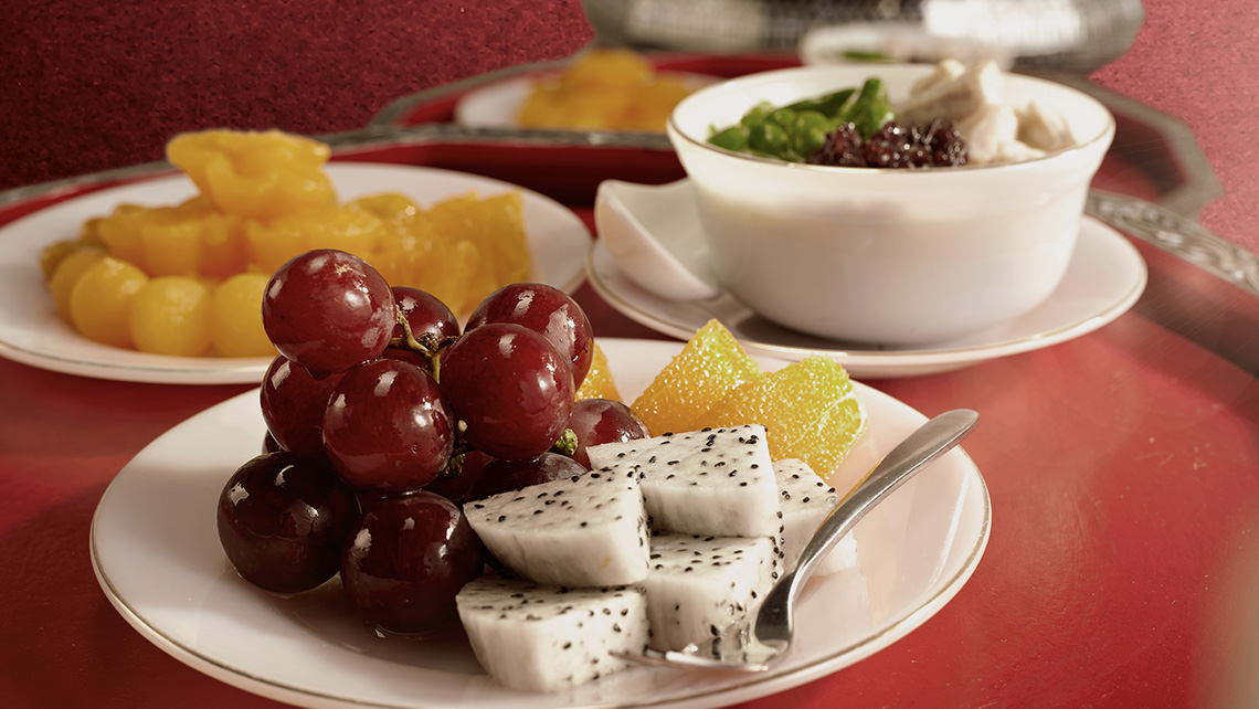 ขนมไทยแบบเป็นชิ้นเป็นคำเล็กๆ และผลไม้ตามฤดูกาล ทั้งนี้ลูกค้าต้องแจ้งจำนวนพระสงฆ์และกำหนดว่าจะแบบโตกหรือวง เพื่อที่ทางร้านจะได้จัดเพิ่มให้ได้ครบถ้วนเพียงพอ